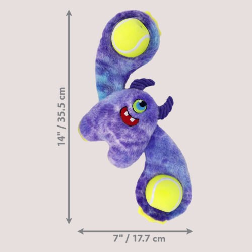 KONG Woozles Monsters’ half-ball arms make flopping and shaking even more fun, satisfying the dog’s natural instincts.